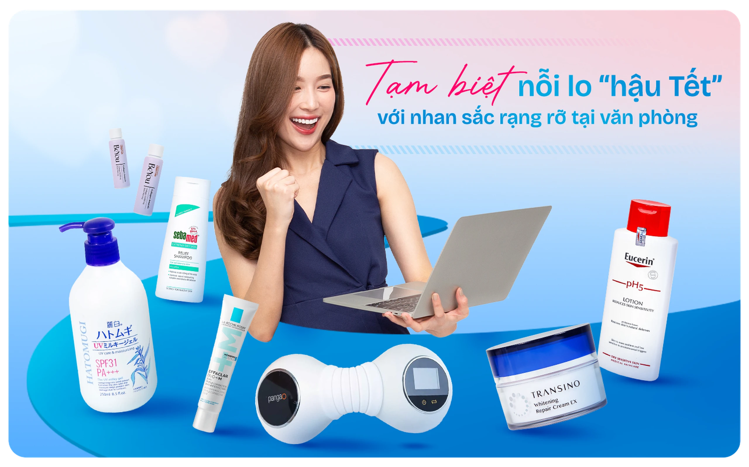 Chị em đừng quá lo lắng khi phải đối mặt với những tác động sau Tết. Nhà thuốc Long Châu sẽ là người bạn đồng hành giúp bạn nhanh chóng lấy lại vẻ đẹp rạng ngời và tự tin khi trở lại công việc.