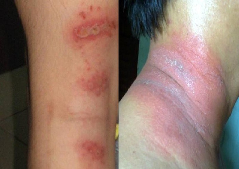Nốt ban đỏ bị chuyển sang nốt mụn mủ, phồng rộp lên thì nên dùng thêm mỡ Oxit kẽm, mỡ kháng sinh để bôi lên da. Nếu không thấy kiến ba khoang, nhưng da tự dưng nổi các vết ban đỏ, lấm tấm mụn nước thì nên nghi bị kiến ba khoang gây tổn thương, cần rửa ngay vùng da đó bằng nước muối sinh lý 3-4 lần/ngày để trung hòa chất tiết của côn trùng.