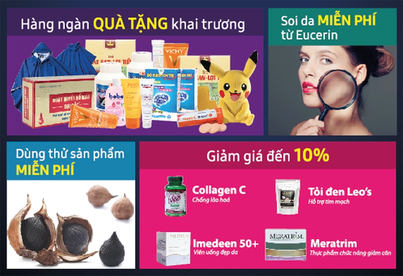 Nhân dịp khai trương, Long Châu sẽ mang đến nhiều ưu đãi thiết thực và có ích cho nhu cầu sống khỏe sống đẹp của mọi người mọi nhà. Cụ thể, Long Châu sẽ tặng rất nhiều quà tặng mang ý nghĩa và giá trị như: