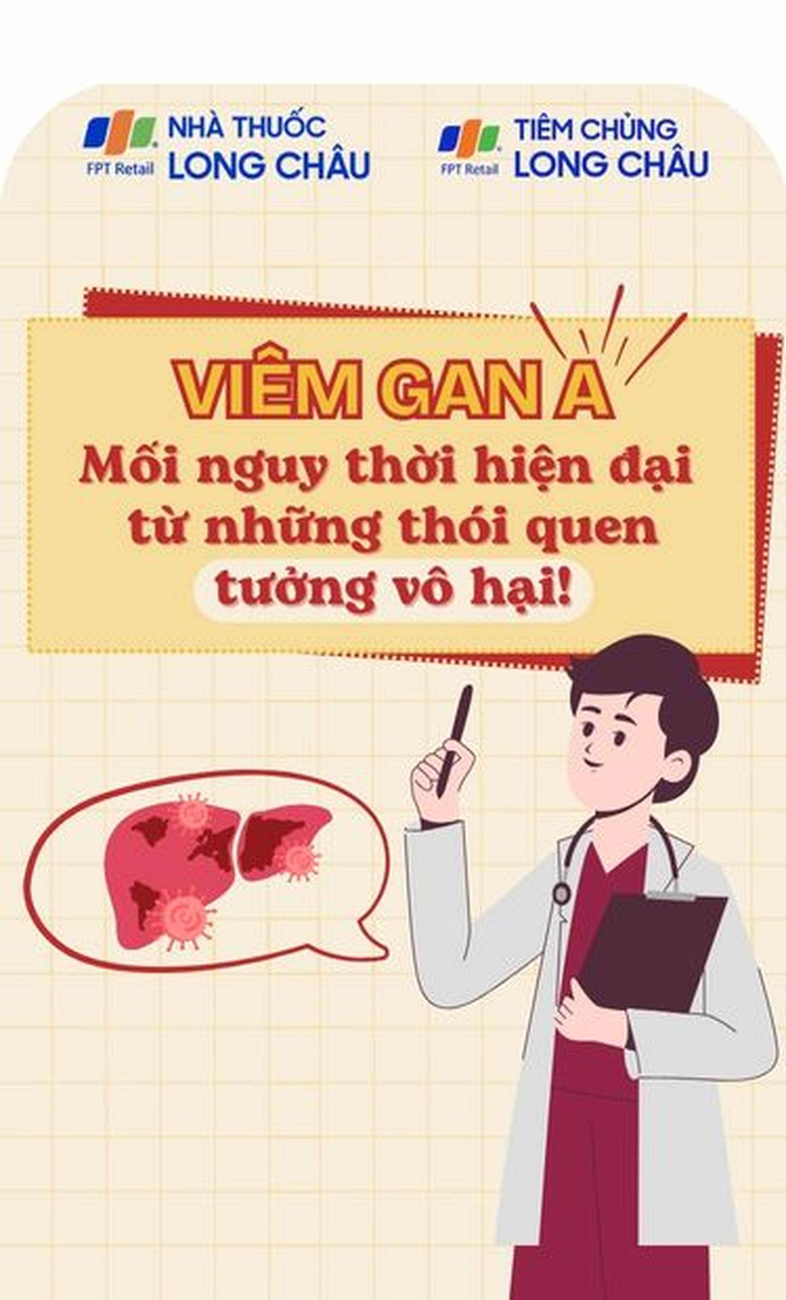 Đừng để sức khỏe của cả gia đình bị đe dọa bởi một loại virus hoàn toàn có thể phòng tránh. Phòng ngừa viêm gan A không hề phức tạp: Tiêm vắc xin đúng lịch, rửa tay đúng cách, ăn chín uống sôi, chỉ cần những thói quen nhỏ, nhưng hiệu quả lớn. Virus có thể lặng lẽ xuất hiện, nhưng bạn có thể chủ động ngăn chặn ngay từ hôm nay. Chủ động phòng bệnh để mỗi ngày là một ngày sống khỏe và an tâm.