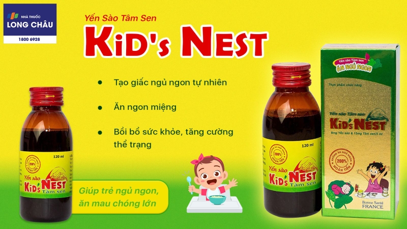 Siro yến sào Kid’s Nest tâm sen giúp cải thiện giấc ngủ cho béTrên đây là thông tin xoay quanh chủ đề yến sào cho bé. Hy vọng qua bài viết này, bạn đọc có thể hiểu được những lợi ích của yến sào đối với sức khỏe của trẻ đồng thời tìm được cho mình câu trả lời cho câu hỏi:"Bé 10 tháng ăn yến sào được không?". Chúc bạn đọc thật nhiều sức khỏe và đừng quên theo dõi trang web của Nhà Thuốc Long Châu để cập nhật thêm nhiều bài viết bổ ích khác nhé!