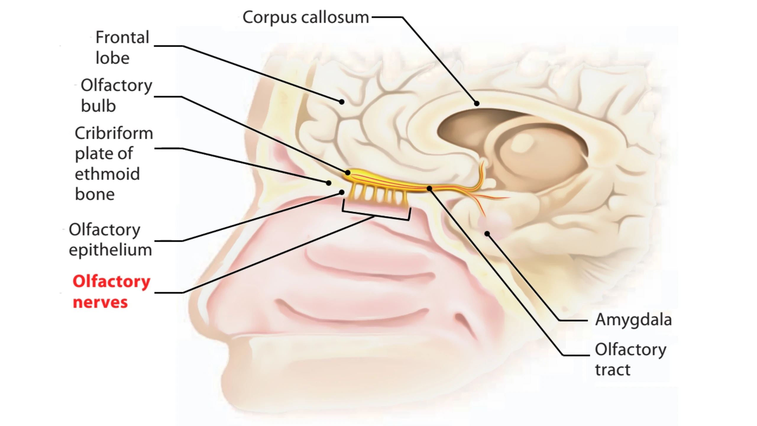 Dây thần kinh khứu giác có thể bị tổn thương bởi chấn thương, gây rách thần kinh khứu giác, nhiễm trùng, dẫn đến liệt dây thần kinh khứu giác, hội chứng Kallmann,...