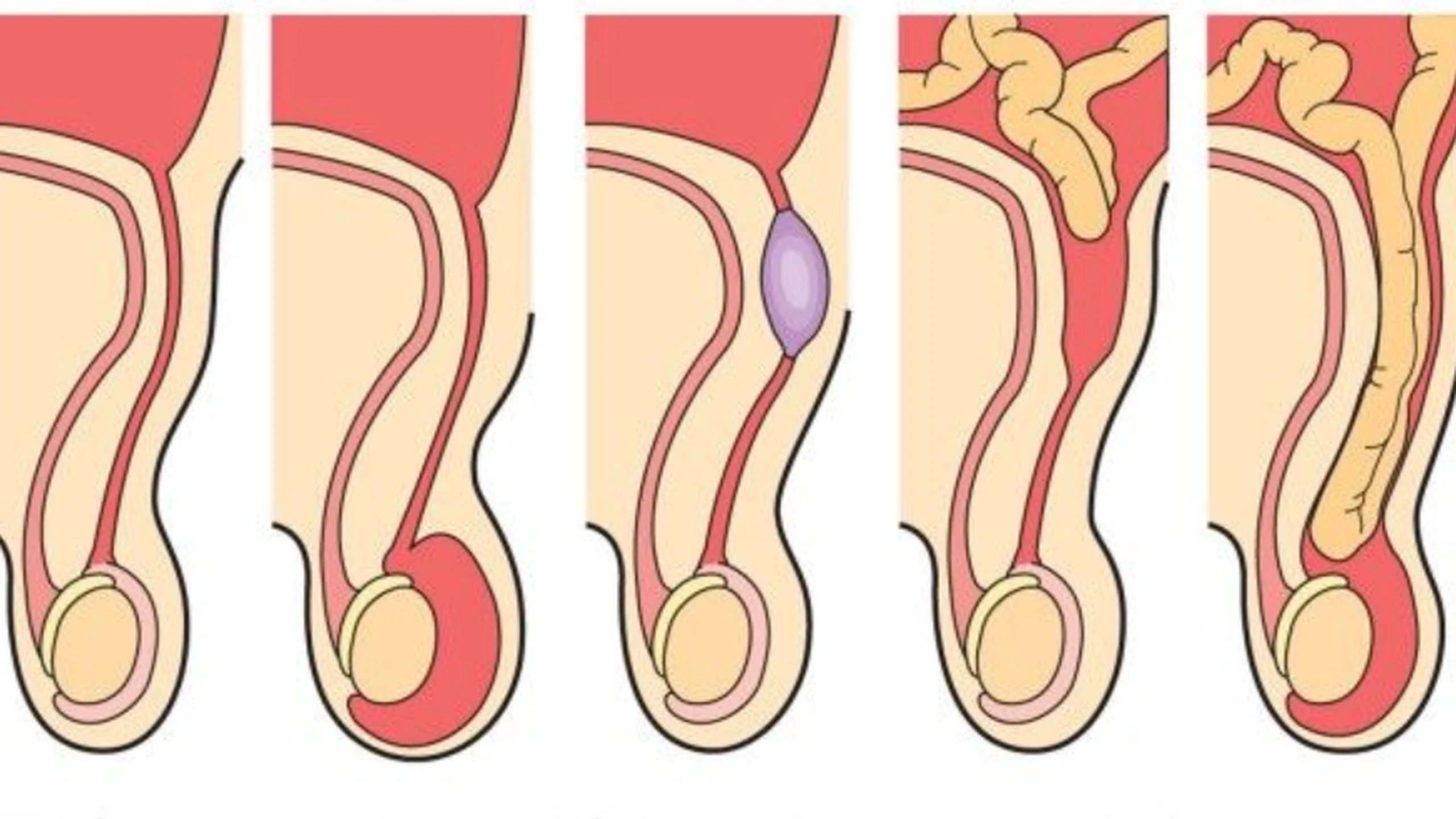 Khối phồng có thể đi vào bìu của trẻ khiến trẻ cảm thấy khó chịu nhất là khi khóc, khi ho, khi rặn đi cầu hay cúi người sẽ làm khối phồng to lên. Trẻ có thể cảm thấy nóng rát hay đau nhức vùng chậu hoặc xuống chân.