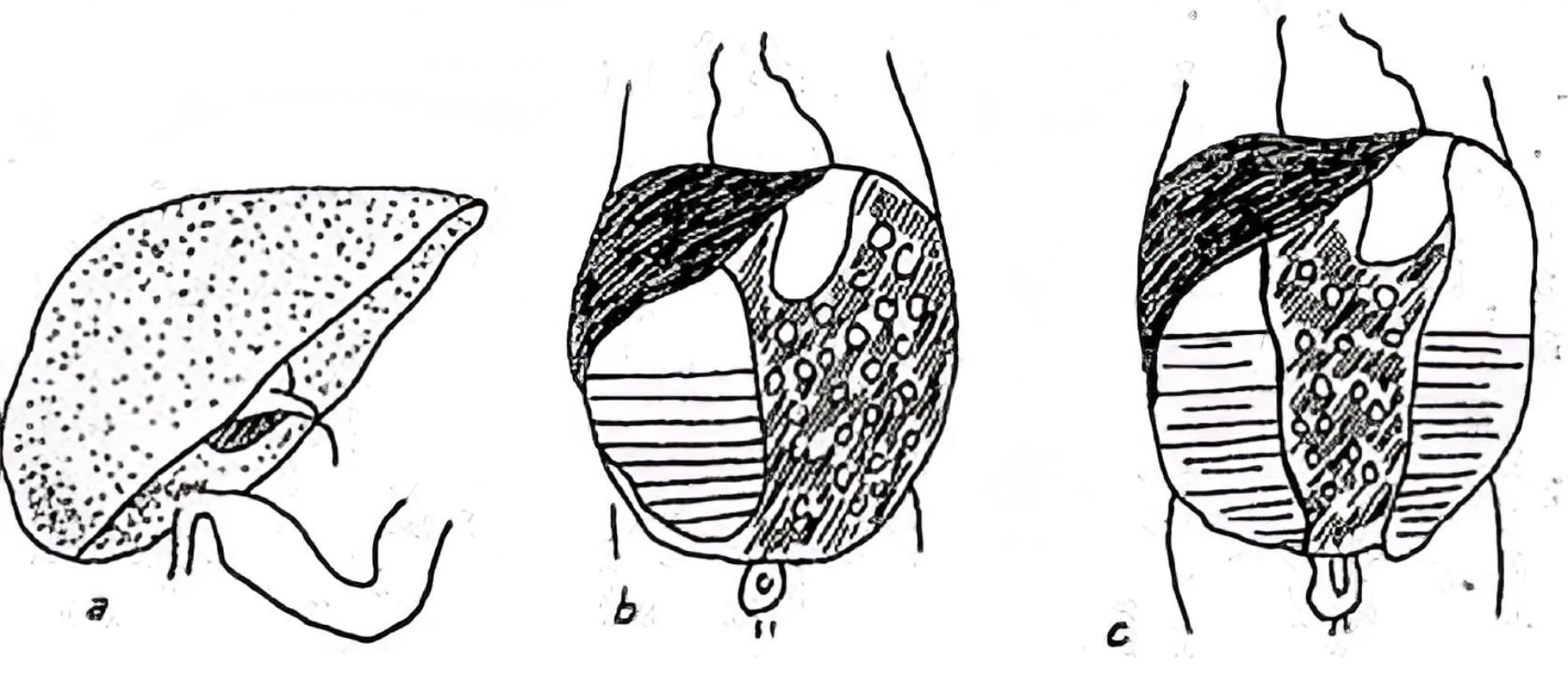 Bụng chướng: Bụng chướng dần, ngày một to, căng bóng, tuần hoàn bàng hệ nổi rõ. Nếu trường hợp ruột tắc cao thì bụng chướng ít.