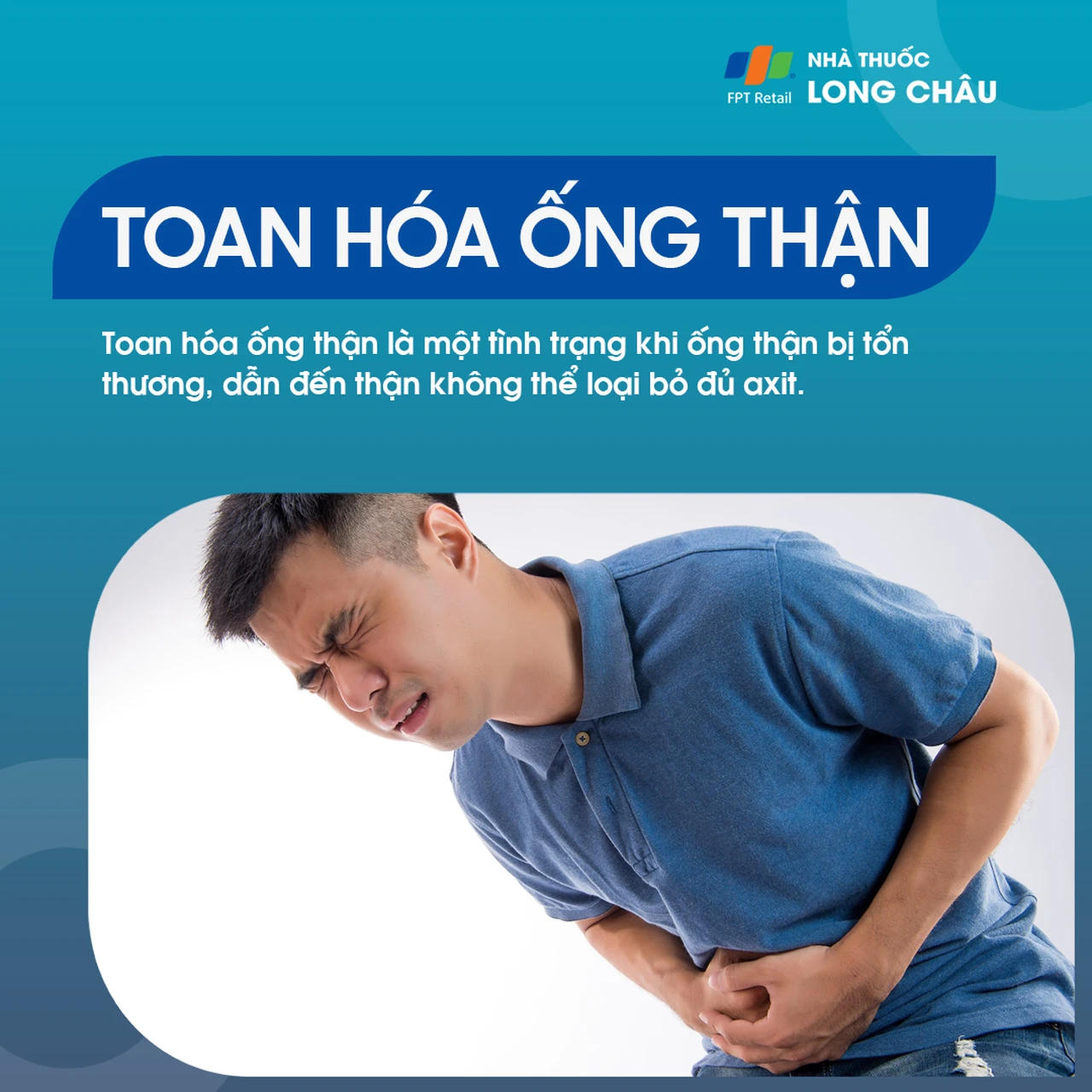 Toan hóa ống thận (Renal Tubular Acidosis-RTA) là một hội chứng lâm sàng trong đó thận không thể loại bỏ đủ axit. Nhiễm toan ống thận có thể được chia thành các loại khác nhau mỗi loại có những đặc điểm riêng do cơ chế hình thành bệnh khác nhau. Chẩn đoán sớm bệnh lý này có thể giúp các bác sĩ ngăn ngừa các biến chứng do rối loạn chức năng thận. Bài viết sau cung cấp một vài thông tin giúp bạn đọc hiểu rõ hơn về hội chứng này.