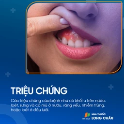 Một dấu hiệu khác của ung thư vùng răng miệng là sự xuất hiện viêm loét ở đầu lưỡi. Cụ thể là những đốm tròn màu hồng đậm, sẫm hơn so với các vùng khác và không có xuất hiện mảng bám. Việc sinh hoạt hàng ngày có thể gây ra cảm giác đau chói và khó chịu, tương tự khi bị nhiệt miệng, nhưng mức độ nghiêm trọng hơn. Ngoài ra, tổn thương hoặc loét đầu lưỡi cũng có thể gây chảy máu liên tục hoặc khi chạm vào.