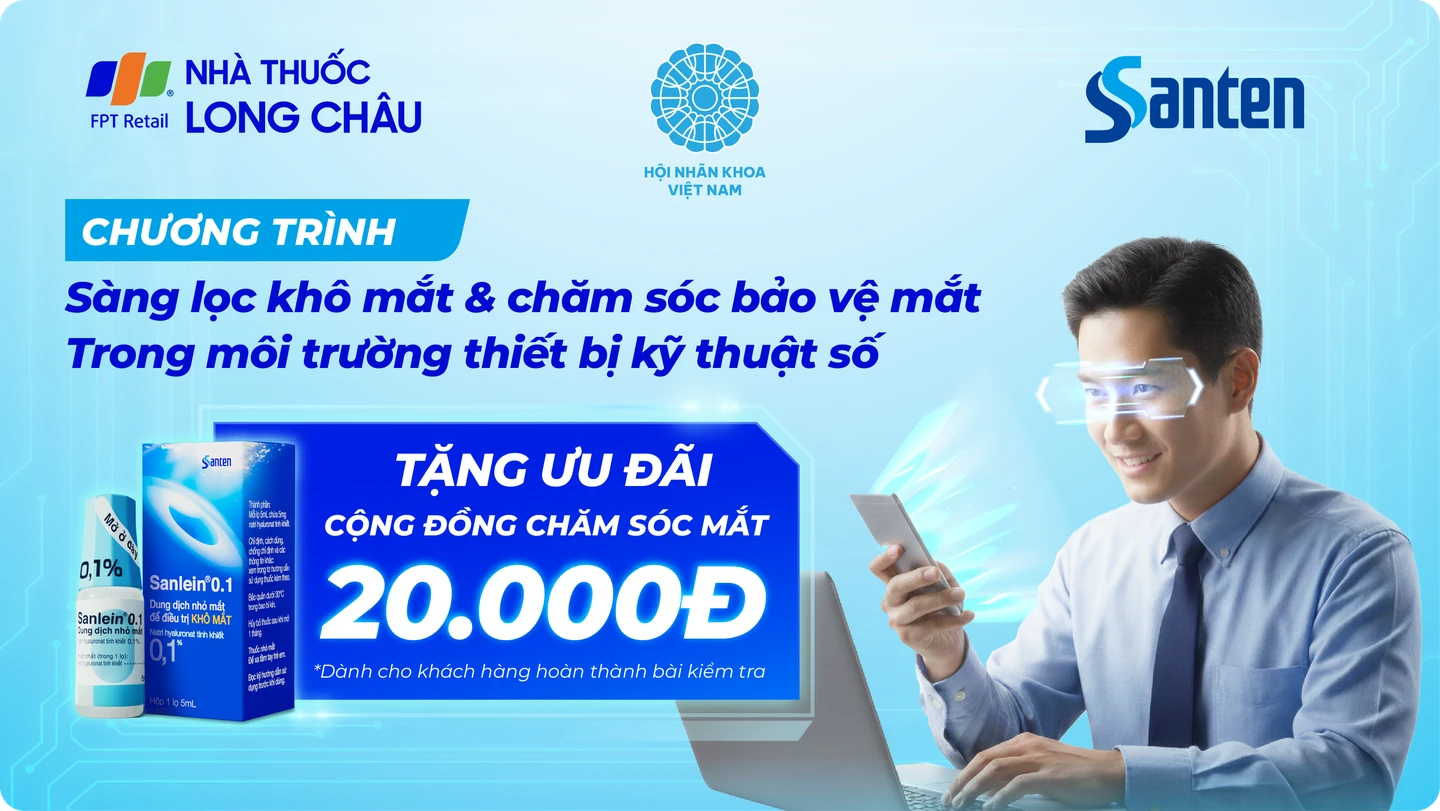 Chương trình kiểm tra mắt miễn phí do Nhà Thuốc Long Châu phối hợp Santen Việt Nam tổ chức. Thông tin bạn cung cấp sẽ được Santen quản lý.