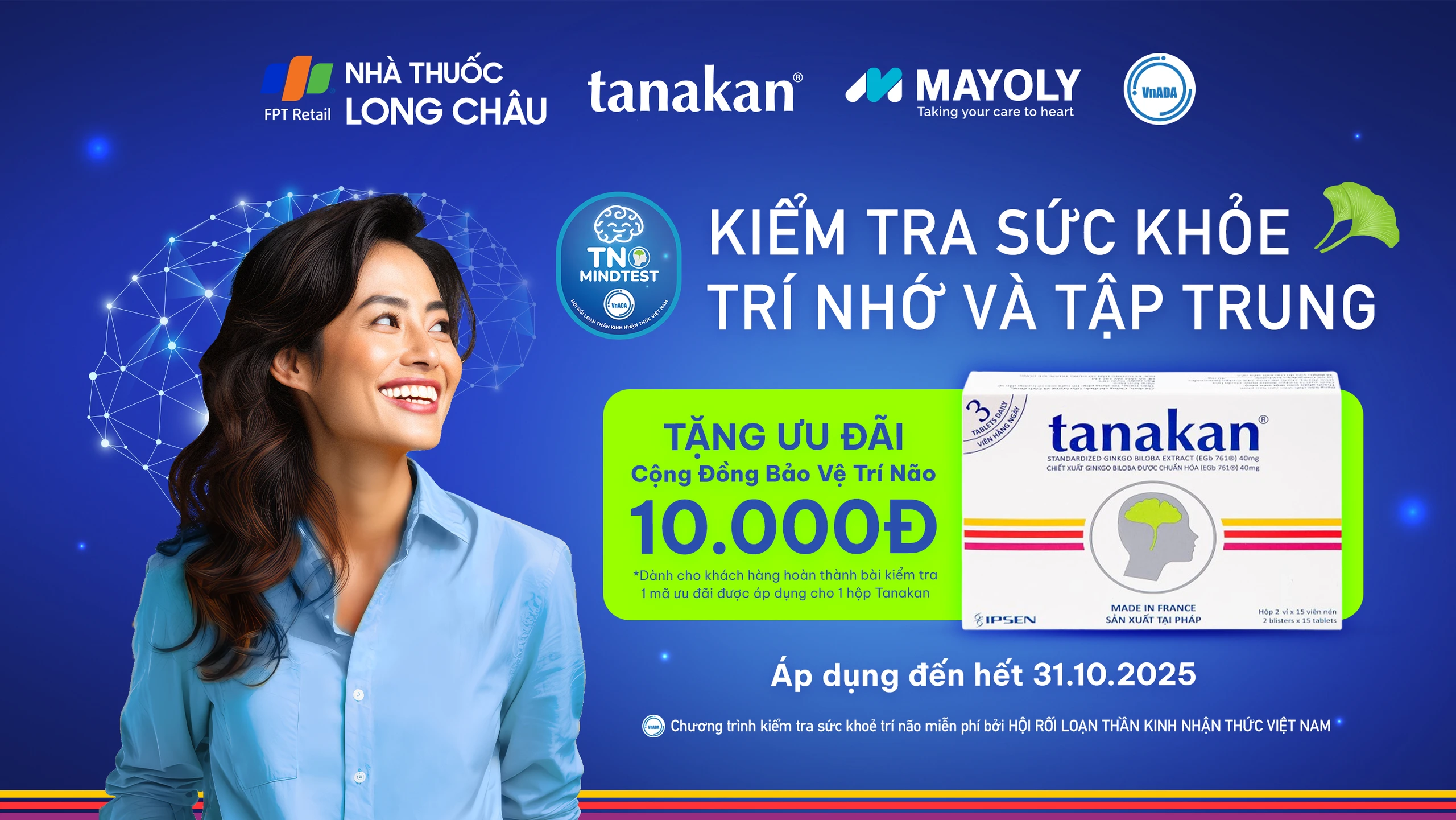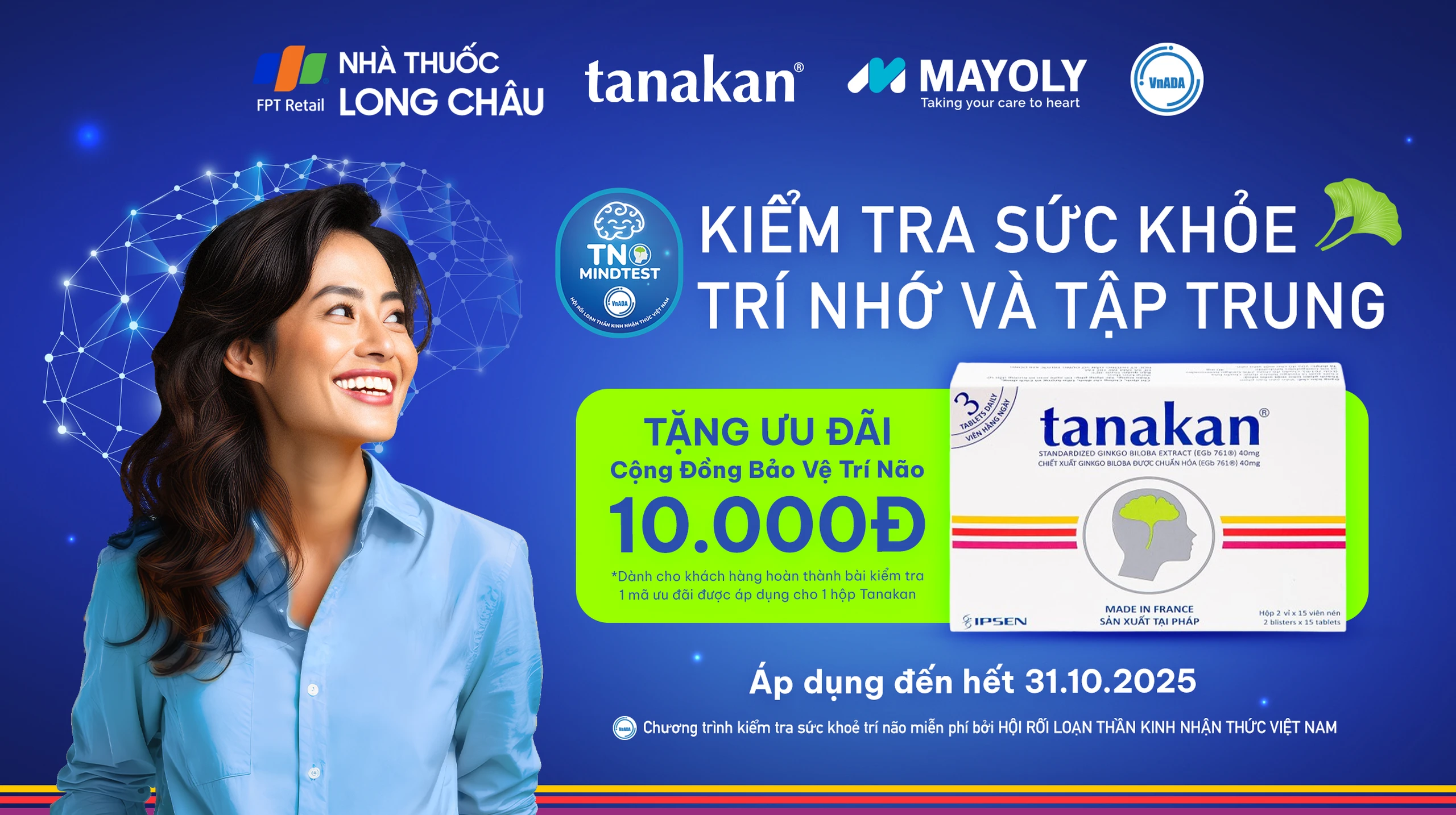 Chương trình kiểm tra sức khỏe trí não miễn phí được phát triển bởi Hội rối loạn thần kinh nhận thức Việt Nam (VNADA). Kết quả kiểm tra và thông tin bạn để lại (nếu có) sẽ được quản lý trên nền tảng TNmindtest của VNADA.